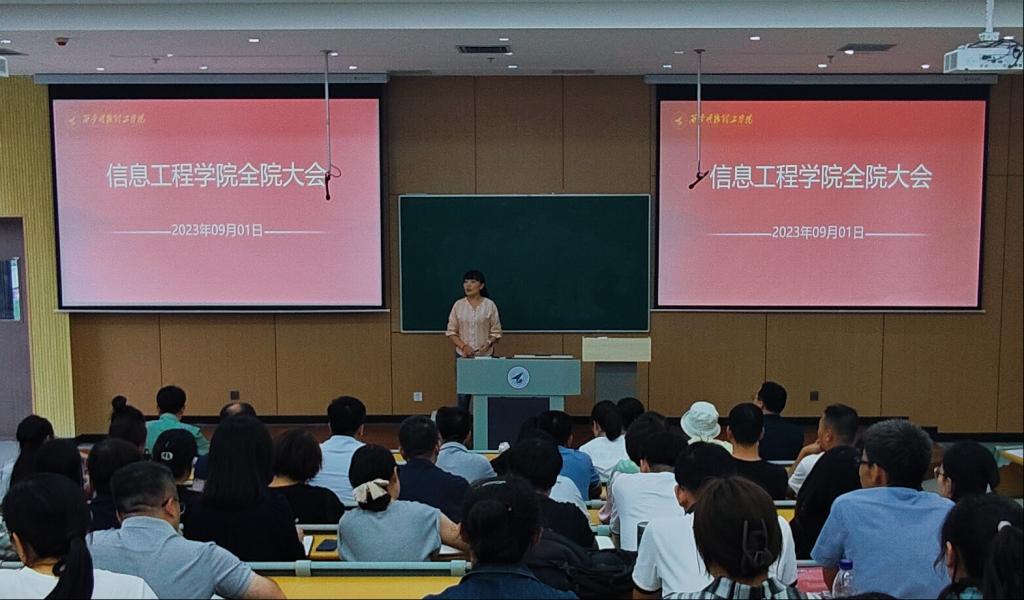 2023年9月1日下午,信息工程学院在7号教学楼101召开了2023-2024学年秋季学期全院大会。学院院长王丽芳、党委书记肖千春、副院长范晖、北斗产业学院副院长张健、副书记高长江及全院140余名教职工参加会议。会议由学院办公室主任尹莹主持。