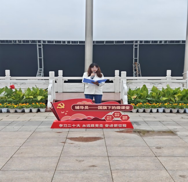 升旗结束后,高等职业技术学院辅导员张璐老师站在国旗下进行了主题为“共建网络安全共享网络文明”的微课堂,她倡议,同学们要成为守护网络安全的第一道防线,自觉遵守国家有关互联网的法律、法规和政策,坚持依法上网,文明上网,共建清朗网络空间,树立文明新风,争做文明网民,共同营造一个文明、安全绿色的网络环境。