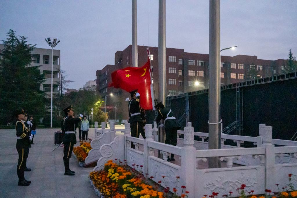 初冬的校园,虽寒风凛凛,但师生们参加升国旗仪式热情十分高涨。7时整,国旗护卫队护送着国旗迈着整齐的步伐走向升旗台,伴随着高亢雄壮的《义勇军进行曲》,鲜艳的五星红旗冉冉升起,迎风飘扬,师生们手持小红旗整齐列队向国旗敬礼,抒发对伟大祖国无比热爱和崇敬之情。