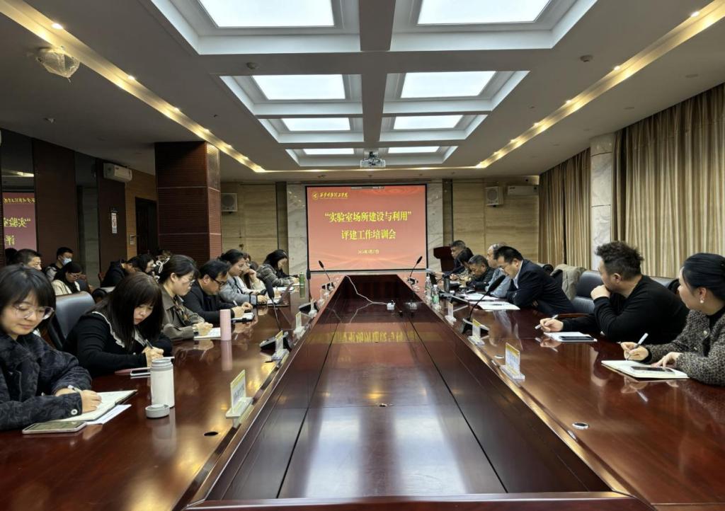 为进一步落实本科教学工作合格评估各项要求,促进学校各单位实验室管理工作规范、有序运行,提高管理水平。3月27日下午,教务处在图书馆407会议室组织召开“实验室场所建设与利用”评建工作培训会,会议特邀原陕西学前师范学院教学与实验管理处处长李东教授进行专题培训。各二级学院分管实验室院领导、实验室管理人员、财务处、教务处、科技处、教学技术服务中心、资产管理处、智慧安全警务处、网络信息化中心等相关人员参加了培训会。会议由教务处副处长任华主持。