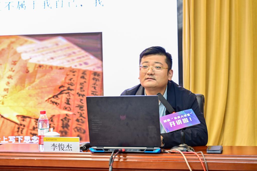 3月27日,学校第44期明德“亲青大讲堂”在建德楼203报告厅举行,华商网副总编辑、华商报社团委书记李俊杰受邀走进明德作《新时代下,如何传播党的理论、团的声音兼谈中国共青团的百年光辉历程》专题讲座。