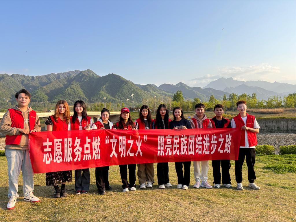 为铸牢中华民族共同体意识,践行社会主义核心价值观,倡导生态文明理念,4月10日下午,党委学生工作部组织开展了以“志愿服务点燃文明之火,照亮民族团结进步之路”为主题的沣河净摊志愿服务活动。新疆派驻教师那迪娜带领10余名各族学生参加了活动。