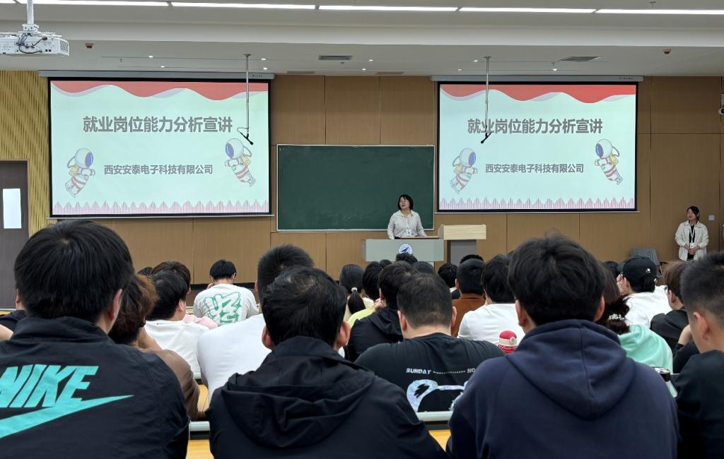 为引导2025届毕业生正确认识当前就业形势,树立正确择业观、就业观,为求职工作做好充分准备。4月17日,信息工程学院通信工程专业特邀西安安泰电子科技有限公司人事经理王霞、项目研发工程师李阳和石嘉琪,进行了一场别开生面的就业能力分析与职业规划交流活动。