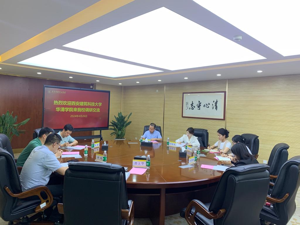 4月26日下午,西安建筑科技大学华清学院董事会办公室主任唐菲菲一行5人来校调研交流,学校集团战略发展部总经理兼规划发展与协调处处长孙屹、学校办公室副主任刘书沛及相关职能部门人员热情接待并参加了交流活动。座谈会由学校办公室副主任刘书沛主持。
