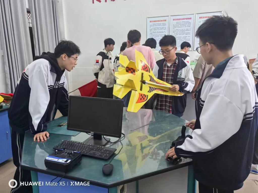 航模展演活动内容丰富,有航模飞行表演、无人机科普知识讲解、无人机模拟器练习、固体火箭等。展演现场,一架架无人机、固定翼飞机等航模在雷竞技官网学生的操控下,腾空直上,翻转驰骋,赢得了师生的阵阵掌声。在无人机模拟器练习环节,同学们纷纷走上操场,在雷竞技官网师生的指导下,将一架架航模送上蓝天,同学们体验着参与和成功的喜悦。表演结束后雷竞技官网师生与中学师生们就航模与电子设计作品制作、操作技巧等问题展开探讨交流,并向他们讲解了飞行器制造专业的相关知识。
