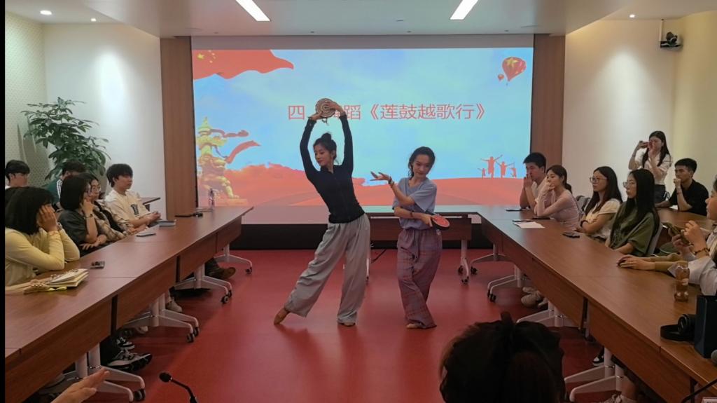 随后,为展现明德青年学生风采,学校杨聪慧同学带来了拉丁舞表演,朱珺瑶、朱润彤同学表演舞蹈《莲鼓越歌行》。袁燕燕、刘源远、薛东浩、陈成杰四位同学一起演唱歌曲《房间》。与歌声共振,与艺术同频。充分展现了明德学子的精神风貌,更诠释了青春与理想同行、实践与梦想同步的志向与抱负。