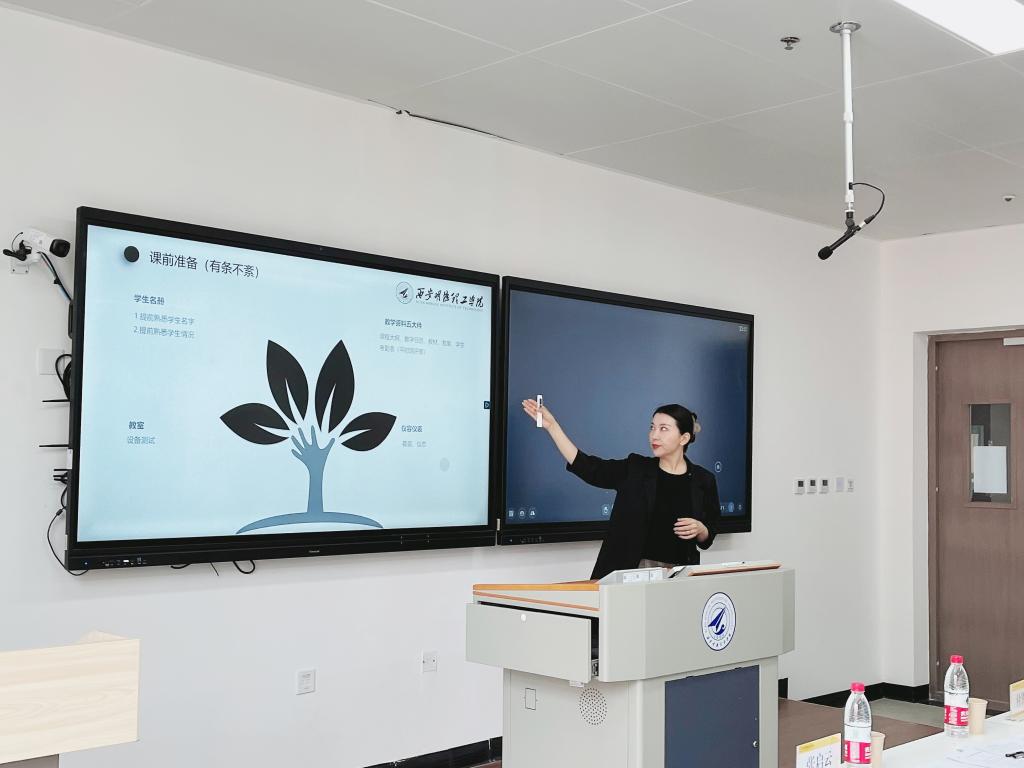 首先由李阳阳教授为新教师进行了试讲示范。她以深入浅出的方式,生动地讲解了一名教师如何上好一堂课,她从课前准备、课程要求、课程计划、考核考勤等方面讲解,不仅展示了她扎实的专业知识,还体现了高超的教学技巧。