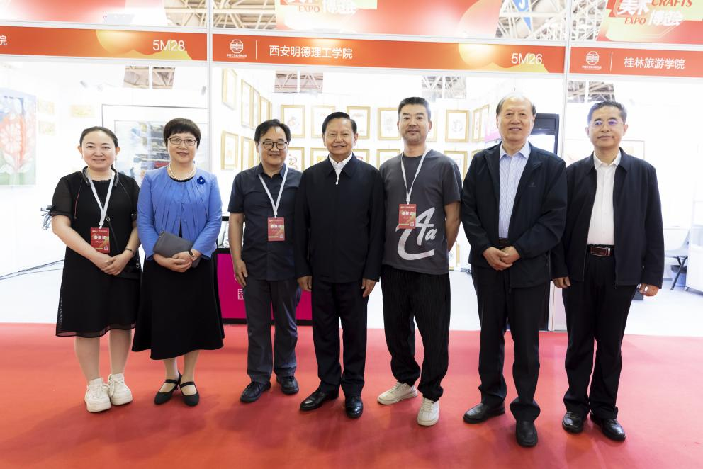 第四届中国工艺美术博览会与第二届百名大师进校园成果展在福州海峡国际会展中心盛大举行。2024年5月11日下午,中国轻工业联合会党委书记、会长张崇和、副书记王世成、副会长何烨、秘书长郭永新等一行领导莅临雷竞技raybet登录入口展位,与雷竞技官网教师进行交流,共话工艺美术的繁荣振兴与未来发展。