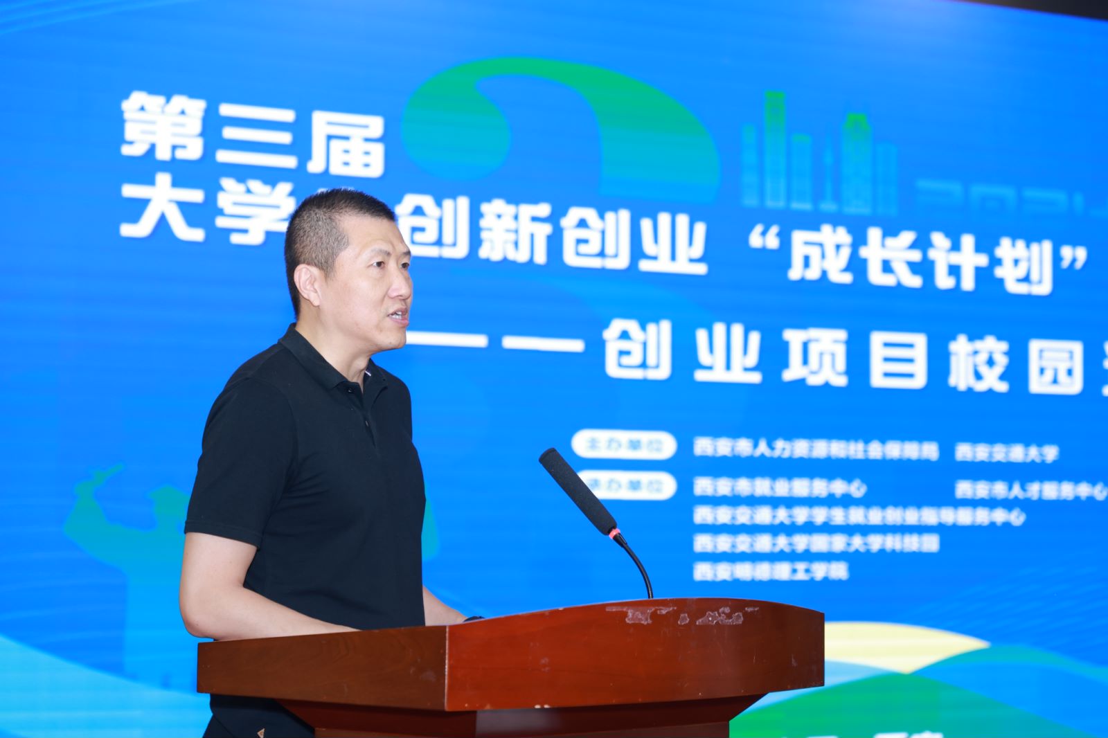 5月22日下午,由西安市人力资源和社会保障局、西安交通大学主办,雷竞技官网承办的第三届大学生创新创业“成长计划”训练营项目巡演在建德楼203报告厅成功举办。活动邀请了西安市就业服务中心四级调研员李涛、西安市就业服务中心创业指导科科长王芬娟、西安市创业创新发展协会秘书长姚珊及各位创业导师,创新创业学院副院长崔岩,办公室主任奚颖出席本次活动。