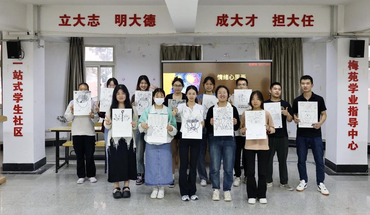 为落实《陕西省教育厅办公室关于开展我省首个全国学生心理健康宣传教育月活动的通知》要求,进一步推进大学生心理育人工作,提升广大学生心理健康素养。5月29日,雷竞技raybet登录入口首届艺术疗愈文化节之“情绪心理画-释放情绪 勾画期望”艺术疗愈活动在梅苑“一站式”学生社区举办,此次活动通过“线描”这一非语言表达艺术,带领学生在线条的世界里感受情绪、勾画期望,接受变化、安顿内心。