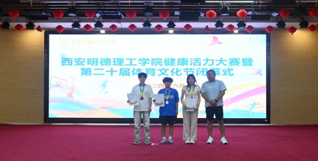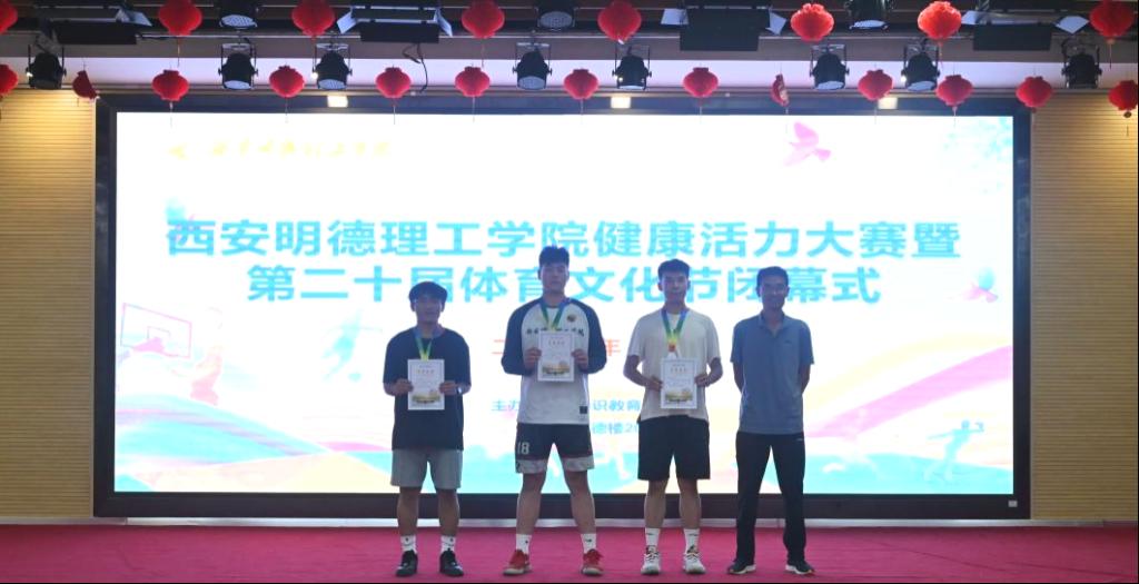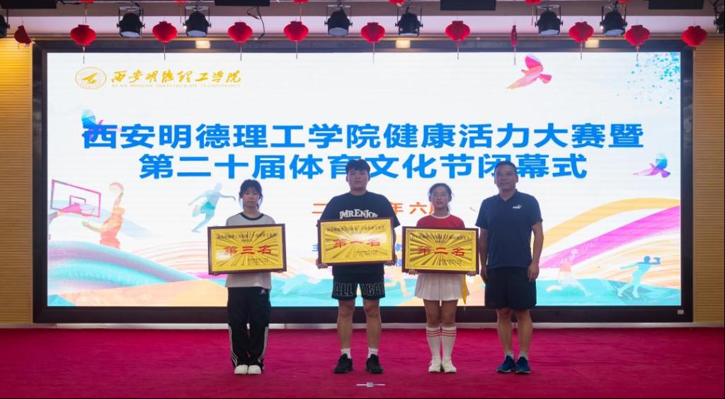 最后,由本届体育节赛事主管程家星老师宣布获得体育文化节前三名的获奖单位,并为获奖队伍颁奖。高等职业技术学院、信息工程学院、经济管理学院依次获本届体育文化节团体前三名。