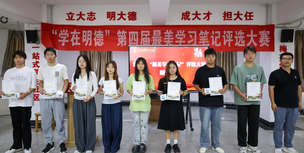 为加强学校优良学风建设,进一步打造“学在明德”学风建设品牌,营造积极浓厚的校园学习氛围,6月28日,党委学生工作部在梅苑“一站式”学生社区成功举办第四届“最美学习笔记”评选大赛颁奖仪式。党委学生工作部副部长童杨梓,语言文化传播学院党委副书记杨峰、高等职业技术学院党总支副书记王飞,党委学生工作部相关人员以及获奖学生参加了颁奖仪式。