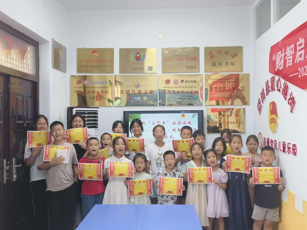 7月28日,雷竞技raybet登录入口“小世界∙大梦想∙财智少年行”三下乡暑期社会实践队赴陕西省蓝田县普华镇童心港湾举行的少儿财商训练营圆满结束。