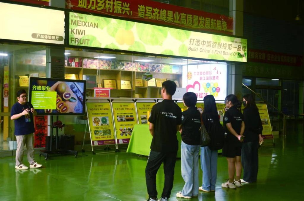参观产业园区,探索助农路径。团队成员在管委会负责人李伟静的指引下,分别参观了位于国家级眉县猕猴桃产业园区内的陕西齐峰果业有限责任公司、陕西千裕酒业有限公司和陕西百贤酒业有限公司,与企业负责人交流农产品电商的发展现状及存在问题。园区依托猕猴桃作物的多种全供应链成熟业态正引领着当地农业走向乡村振兴的新发展高地,企业在助农兴农上的举措也引发了团队成员的进一步思考。