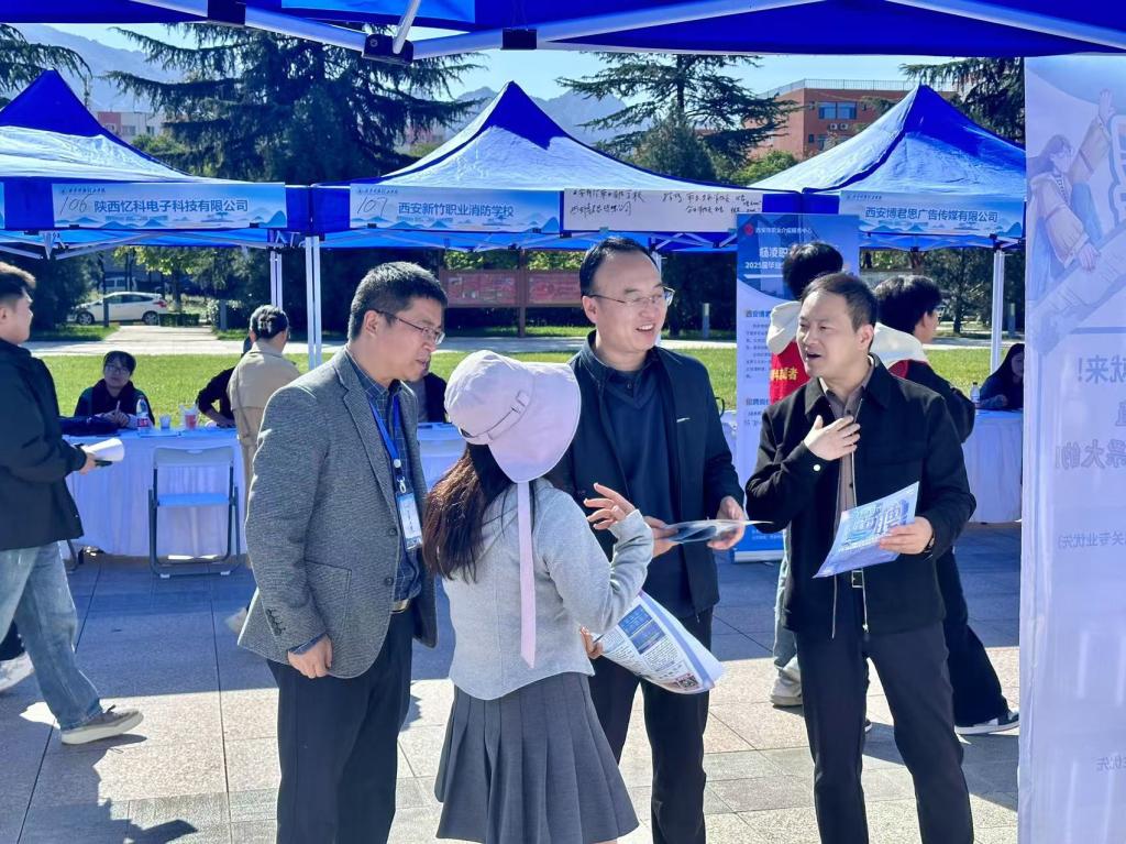 就业是民心工程、根基工程,为深入贯彻落实党中央、国务院及陕西省教育厅关于高校毕业生就业工作的决策和部署,全力做好雷竞技官网2025届毕业生就业工作。10月22日,学校2025届毕业生“秋韵正盛 职盼君来”校园综合类招聘会在长安校区成功举办。西安市职业介绍服务中心就业部部长沈潜、铜川市人才交流服务中心就业促进部部长杨光远、铜川市人才咨询服务有限公司总经理张鹏飞、西安高新区党工委组织人事部工作人员莅临招聘会场指导工作。