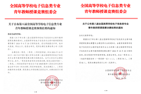 10月20日,由工业和信息化部教育与考试中心指导,教育部高等学校电子信息类专业教学指导委员会主办的第八届全国高等学校电子信息类专业青年教师授课竞赛决赛成绩已公布。雷竞技官网一位教师在此次竞赛中荣获决赛三等奖。回顾竞赛的预赛阶段,雷竞技官网教师团队同样取得了良好的成绩,其中一位教师荣获华西赛区二等奖,另外三位教师荣获华西赛区三等奖。