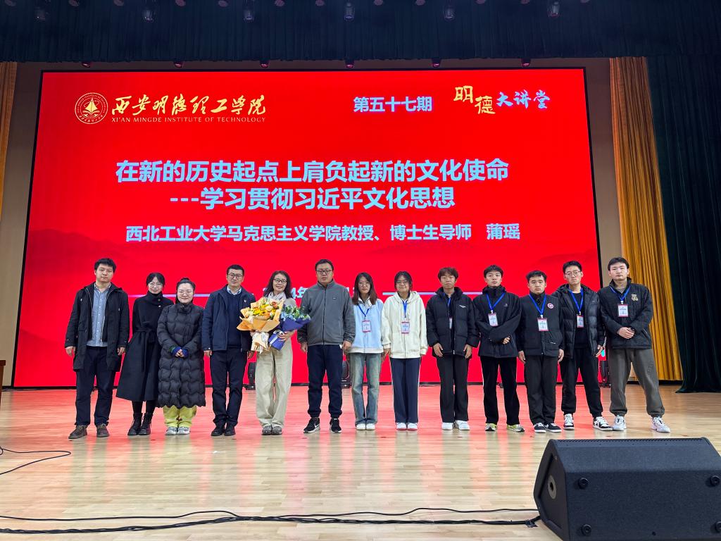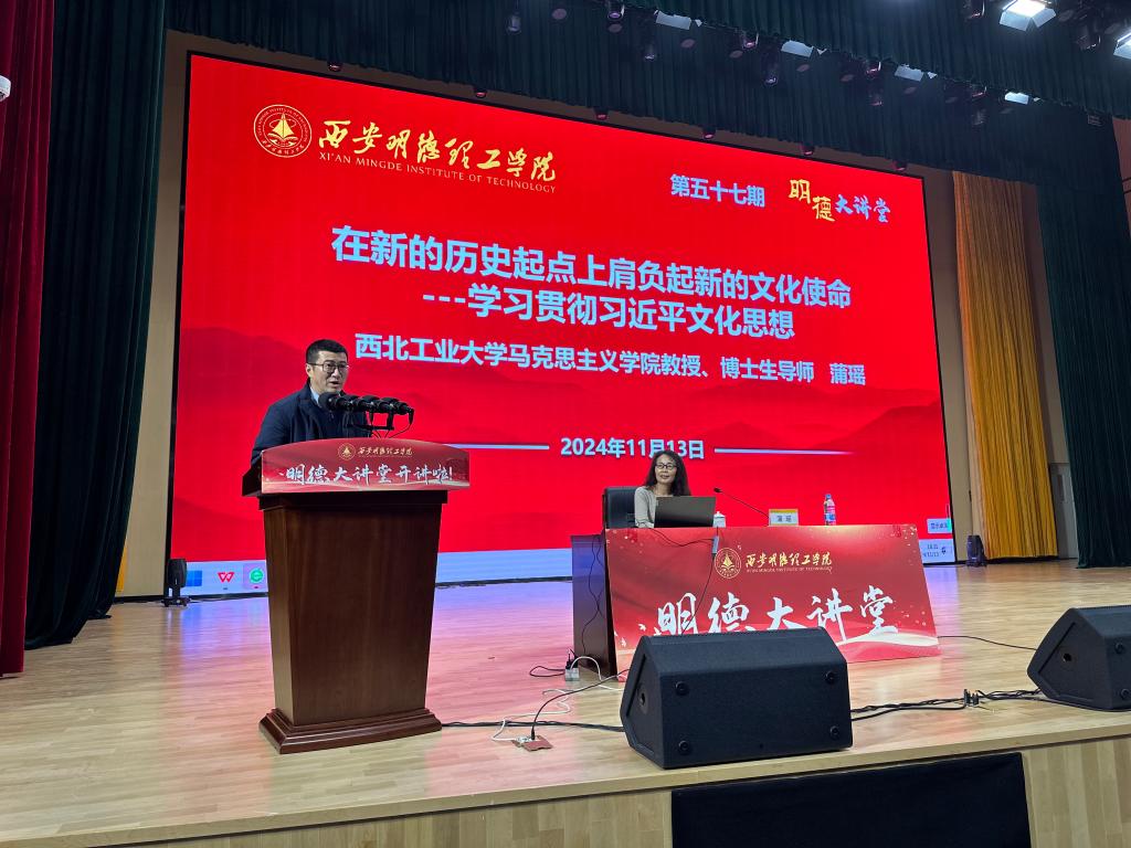 11月13日,雷竞技官网第57期“明德大讲堂”在四季廊桥报告厅隆重举行。本次讲座邀请到西北工业大学蒲瑶教授作题为“在新的历史起点上肩负起新的文化使命——学习贯彻习近平文化思想”主题讲座。讲座由人力资源处副处长康抗主持。