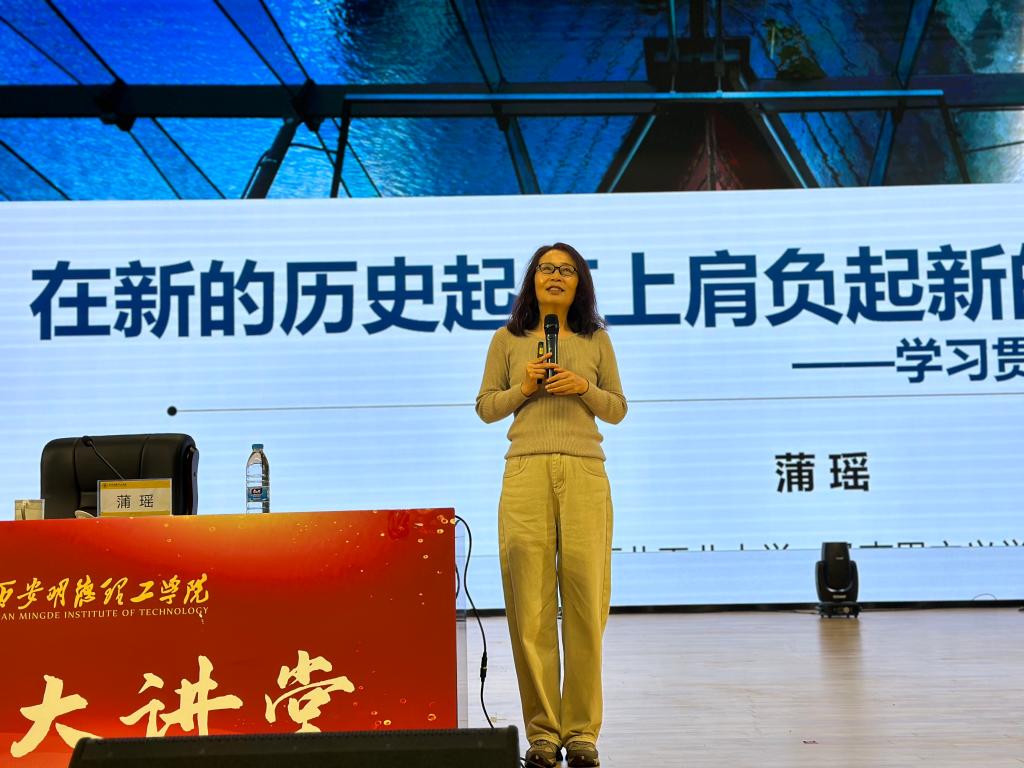 随后,蒲瑶教授就如何准确把握习近平文化思想的丰富内涵,从推进文化自信自强和牢牢把握党对意识形态工作领导权两个方面进行详细解读,结合自身多年教学经验和贴近当代大学生的实际案例,让现场学生意识到文化是一个国家、一个民族的灵魂,文化兴国运兴、文化强民族强,没有高度的文化自信,没有文化的繁荣昌盛,就没有中华民族伟大复兴。最后,蒲瑶教授希望学生要加强中华优秀传统文化、革命文化、社会主义先进文化的学习,深刻体会文化自信的基本内涵。