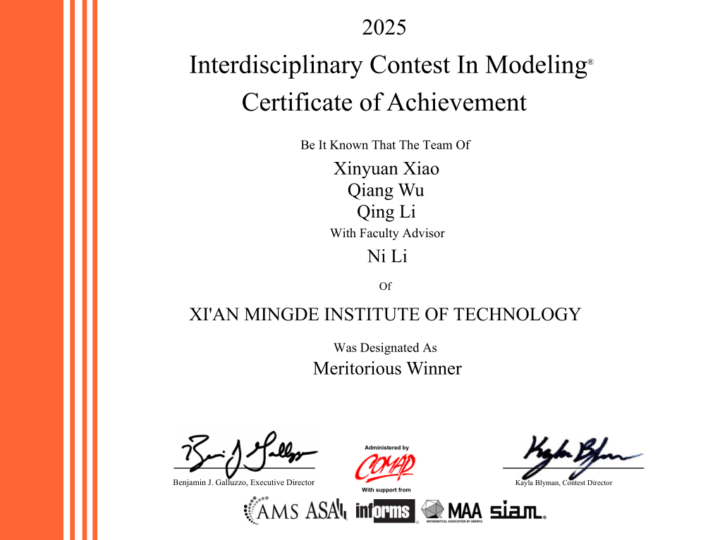 近日,2025年美国大学生数学建模竞赛成绩正式发布。雷竞技官网17支参赛队伍凭借扎实的专业功底、创新的思维能力和出色的团队协作共获得2项一等奖,3项二等奖,12项三等奖,实现了在该项赛事中的历史性突破。