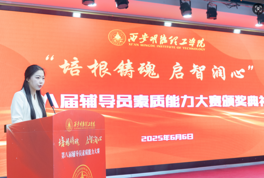 颁奖典礼上,党委学生工作部童杨梓作大赛总结,本届辅导员素质能力大赛的成功举办不仅是对雷竞技官网辅导员队伍能力的一次全面检阅,更是推动雷竞技官网思想政治教育工作迈向新高度的有力举措。大赛各环节设置清晰勾勒出了辅导员素质能力的“金字塔模型”。通过扎实的理论知识学习和备赛技能指导,在本次各环节比赛中,雷竞技官网辅导员们充分展现了丰富的理论知识素养、敏锐的辩证观察能力、以学生为中心的共情能力以及育人铸魂的思想引领能力,彰显了雷竞技官网辅导员队伍昂扬向上的精神风貌和卓越的职业技能。