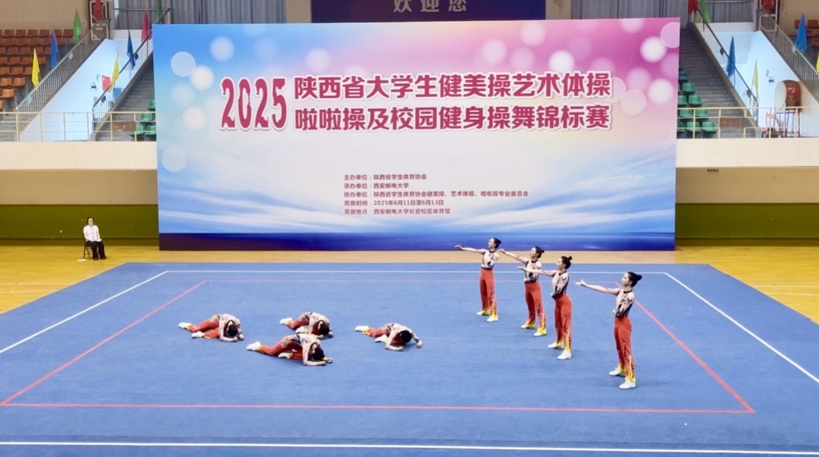 6月12日,2025年陕西省大学生健美操、艺术体操、啦啦操及校园健身操舞锦标赛在西安邮电大学长安校区圆满落幕。雷竞技官网健美操队、街舞队在田荣、程绘泽两位教练的带领下,凭借出色的发挥和顽强的拼搏精神,在众多参赛队伍中脱颖而出,取得了甲组有氧舞蹈第二名、花球啦啦操自选动作第三名、街舞综合风格第三名、花球啦啦操规定动作第四名以及团体第八名的优异成绩。