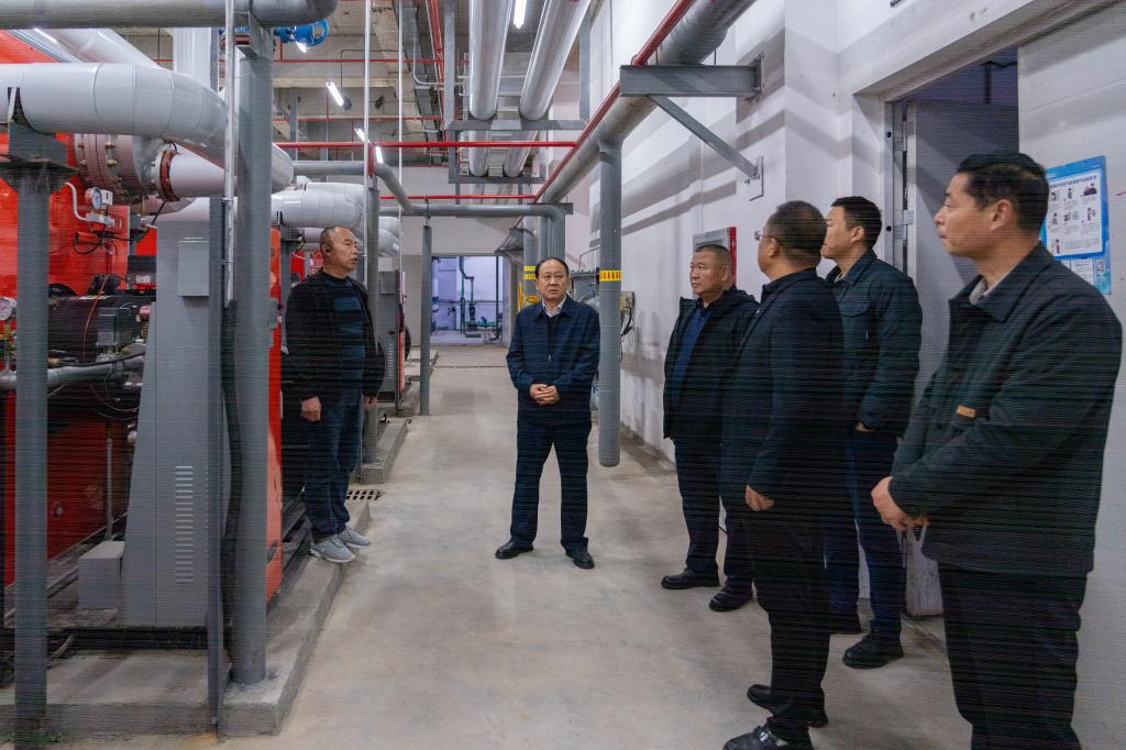 在地热供热中心,王校长一行听取了水电运行负责人关于系统检修、设备维护、管网调试及应急预案的汇报,实地检查了水泵机组、换热站、控制室等关键设施,并询问维护记录、能耗数据及应急流程。王校长强调,地热供暖是绿色校园建设的重要组成部分,需要发挥其清洁高效优势,实施精细化管理,确保热量高效稳定输送。