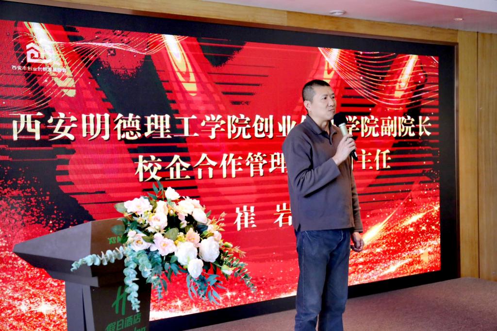 作为合作校方代表,崔岩副院长在大会上发表讲话。他首先对西安市双创协会多年来搭建的优质合作平台表示感谢,对协会第二届理事会期间取得的丰硕成果给予高度肯定。崔岩副院长表示,过去一段时间,学院与协会及各会员单位紧密协作,在创新创业课程共建、实践平台共享、创就业指导等方面开展了一系列务实合作,成功培养了一批具备创新精神和实践能力的优秀学子,有效推动了学生高质量就业与创业实践。