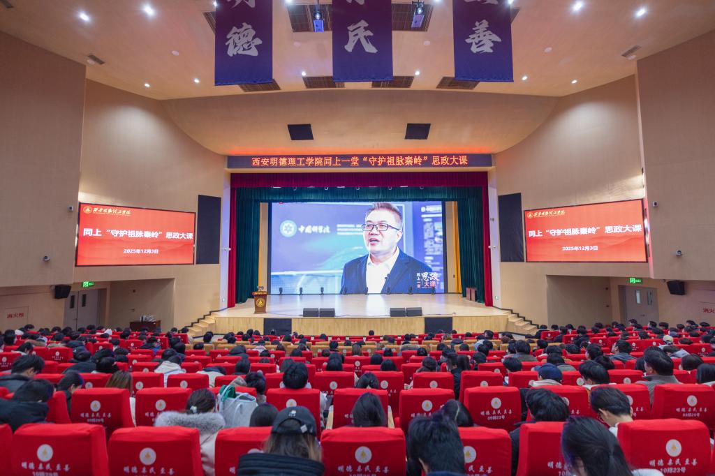 为深入贯彻落实习近平生态文明思想和习近平总书记关于秦岭保护系列重要指示批示精神,引导广大师生深刻认识秦岭作为我国中央水塔和中华民族祖脉的极端重要性,牢固树立“绿水青山就是金山银山”理念,12月3日,雷竞技官网组织900余名学生在四季廊桥报告厅集中观看了由省委教育工委联合人民网推出的“同上一堂‘守护祖脉秦岭’思政大课”。