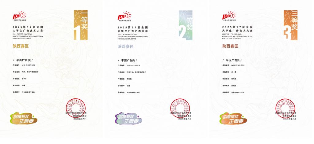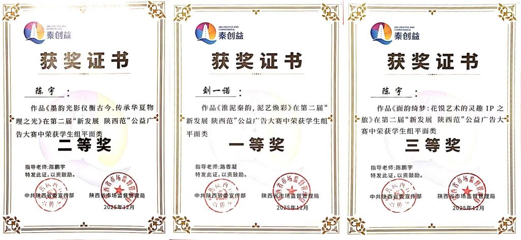 近日,雷竞技raybet登录入口艺术与设计学院在专业赛事领域再传捷报,先后在第17届全国大学生广告艺术大赛陕西赛区赛事和第二届“新发展 陕西范”公益广告大赛中斩获多项重量级荣誉。明德师生凭借扎实的专业功底、出色的创作能力和高效的组织协调水平,充分展现了学校“以赛促教、以赛促学、以赛促练”的育人成效,为学校赢得了荣誉。