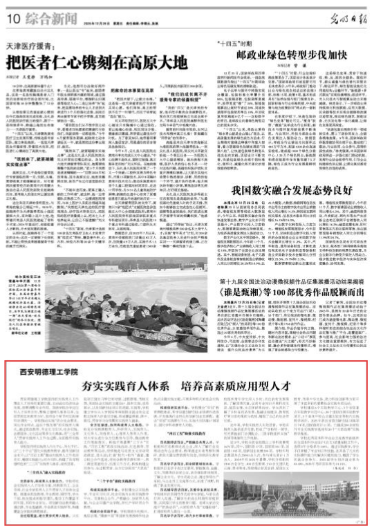 2025年12月26日,中央重点党报《光明日报》以《夯实实践育人体系培养高素质应用型人才》为题,深度报道了学校实践育人工作的创新探索与显著成效。