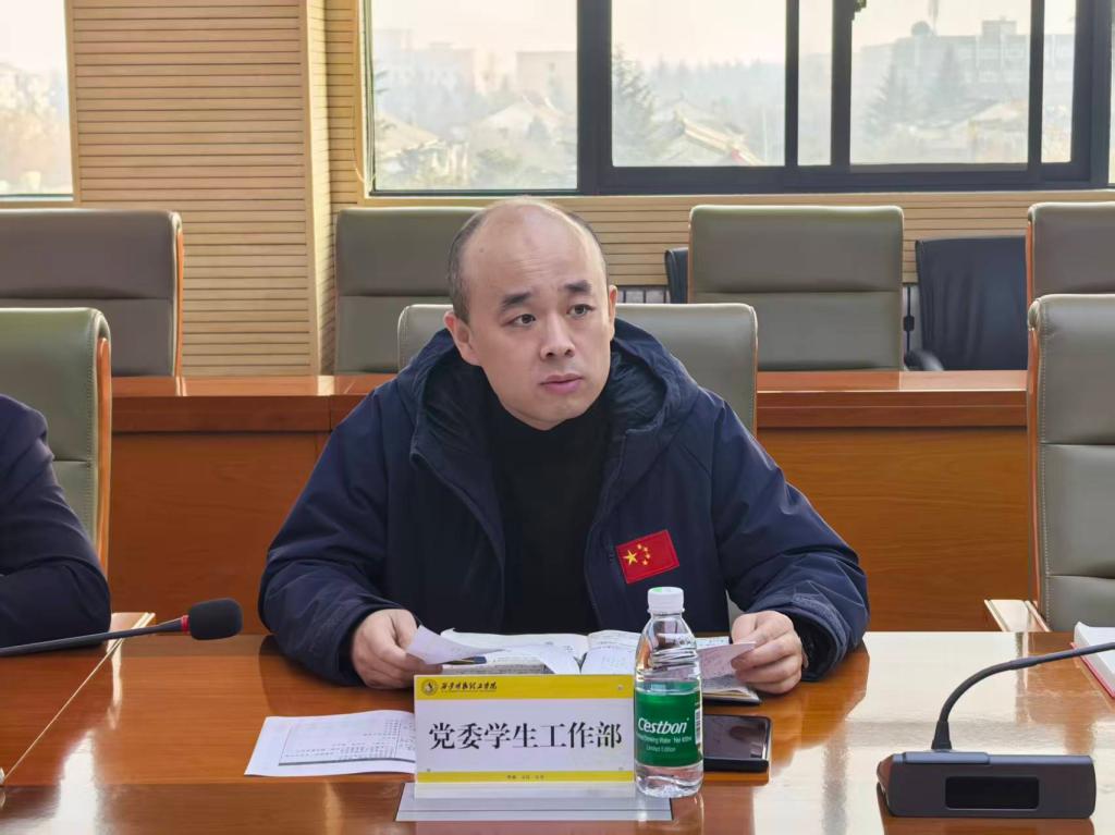 为筑牢校园安全防线,精准排查假期学生安全隐患,全力保障学生平安有序度过2026年元旦假期,12月29日上午,学校在明志楼518会议室召开元旦假期学生安全稳定工作部署会。学校党委副书记、副校长刘星出席会议。党委学生工作部负责人、各学院党委(党总支)副书记参加会议。会议由童杨梓主持。