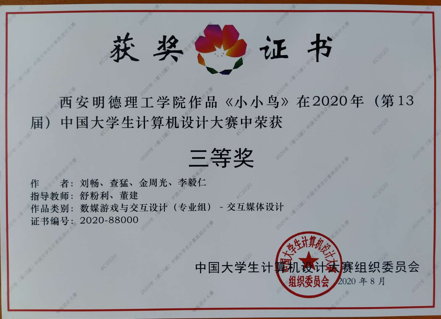 2020年8月是一个收获的季节,在2020年第13届中国大学生计算机设计大赛的比赛中学院有3支队伍进入国赛。最终荣获1个二等奖和2个三等奖和好成绩。