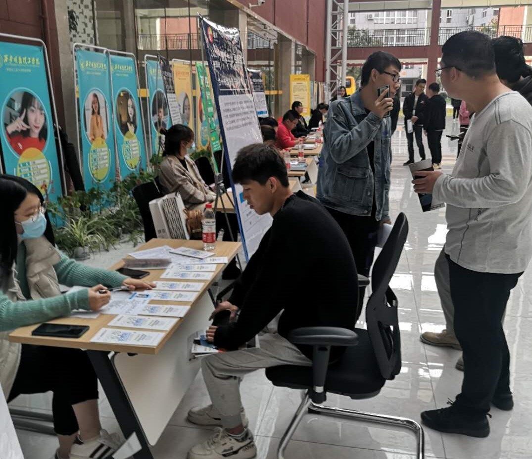 招聘会现场气氛热烈,毕业生与参会企业人员深入交谈,仔细询问招聘信息,选择适合自己的单位与岗位,参会企业也仔细认真讲解台州市人才引进政策及企业为毕业生提供的发展上升空间。当天19:00点,有3家企业在学院安排学生进行面试、复试工作。