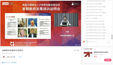 为贯彻落实《关于加强和改进中外人文交流工作的若干意见》《教育部等八部门关于加快和扩大新时代教育对外开放的意见》等文件精神和全国教育大会、全国教育外事工作会议等会议精神,进一步提升将人文交流理念和全球胜任力培养融入高层次国际化人才培养工作的教师教育教学能力,加快培育具有全球视野的高层次国际化人才,推动做好“高层次国际化人才培养创新实践项目”实施工作,教育部中外人文交流中心于2021年1月18日-1月22日组织开展高层次国际化人才培养创新实践项目首期教师发展培训(以下简称“教师发展培训”)。