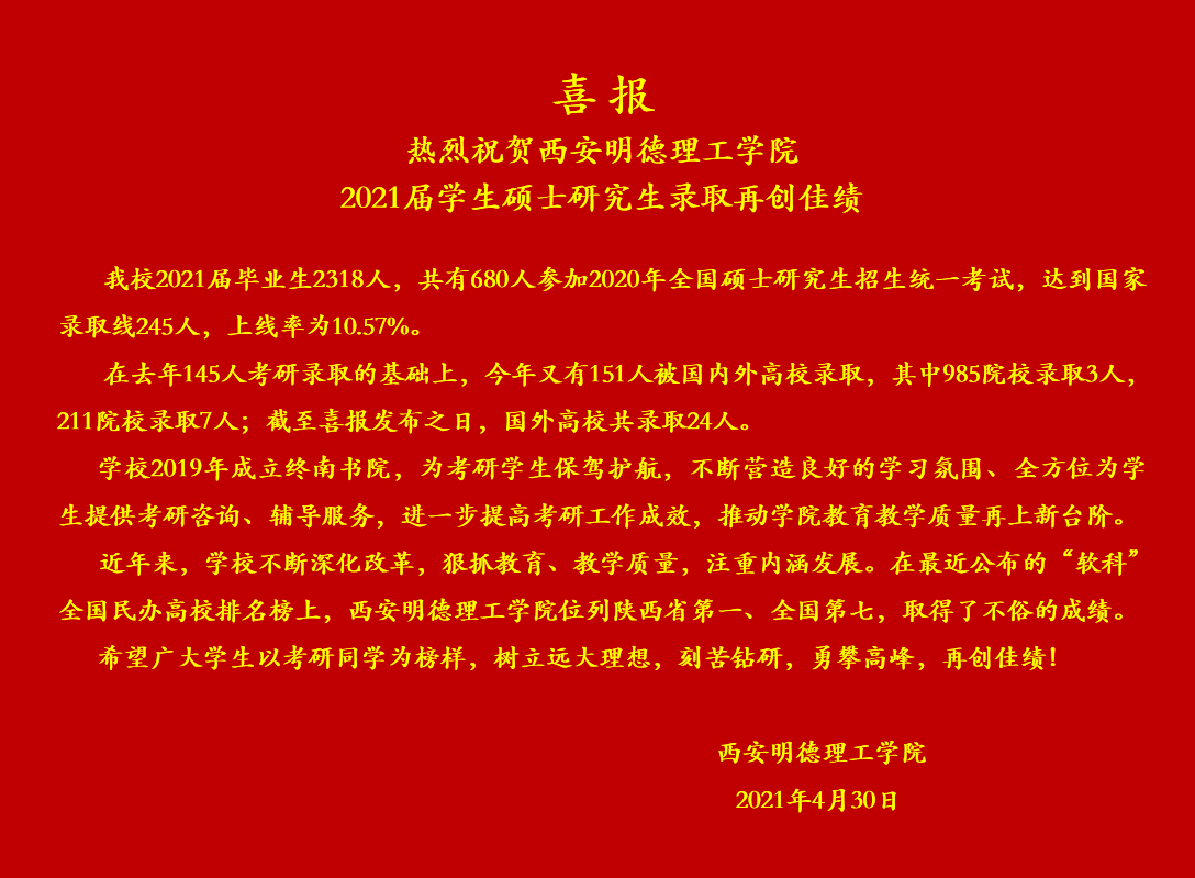 喜报!热烈祝贺雷竞技raybet登录入口2021届学生硕士研究生录取再创佳绩