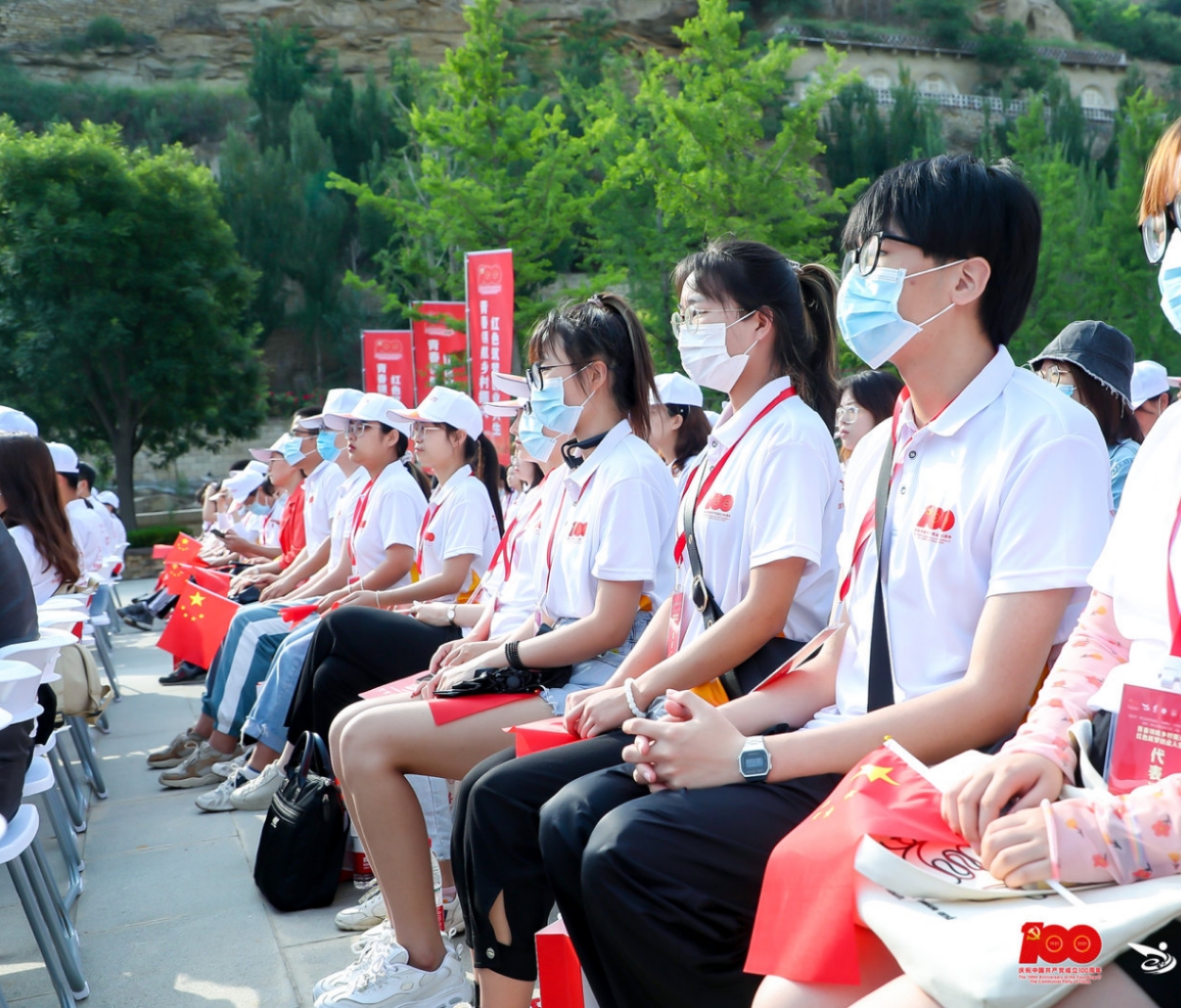 6月10日,该项目团队的学生代表,来自艺术与设计学院视觉传达设计专业大三同学朱卿汉与大一同学康佳晨、辅导员老师李默涵,在组委会的安排下,与全省高校代表一起,参观了延安市革命旧址;走进了毛泽东、周恩来等老一辈无产阶级革命家住过的窑洞。延安大学教授高尚斌作了《百年党史:一部攻坚克难创造辉煌的卓绝奋斗史》主旨报告会;张元老师进行了《张思德精神与为人民服务讲话》党史学习教育现场教学。教学结束后,全体人员还观看了音乐舞蹈史诗--《延安》。