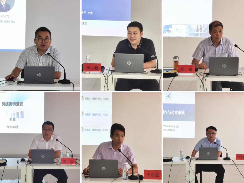 西北工业大学葛文杰教授以《教师如何潜心教书育人》为题讲到“青年教师要牢记新时代赋予的使命,牢记师者身份,恪守职业道德,潜心教书育人”。通识教育学院张梦楚、经济与管理学院王维新两位老师围绕辅导员如何做好繁杂的日常工作同时,提升自己能力、获得职业幸福感进行了详细介绍和阐述;段好宁、倪娜、王煊三位注册心理咨询师结合大学生心理咨询的特点,详细介绍了大学生心理危机的识别方法与处理技巧以及如何在日常工作中释放个人压力;空军工程大学邢斌教授从老师找学生谈话时机的把握、学生主动找老师谈话的主要情形、谈心谈话的主要过程和主要方法及解决思路等几个方面对辅导员谈心谈话能力提升作了准确辅导;西安建筑科技大学学生处长申健、宣传部副部长宋阳紧密结合高校学生工作实际,为大家讲解了突发事件应急处置及网络舆情应急处理的方式方法。陕西科技大学正科级辅导员王正宏结合自身辅导员工作经历,从成长阶段、困惑阶段、成熟阶,用一个个身边的实例,诠释辅导员如何一步步成长为职业化、专业化、专家化的辅导员,并从辅导员个人综合素质提升及职称评定等方面,给予了大家宝贵的建议和意见。 西北工业大学学校办公室文秘政研科科长徐永超从公文写作的特点入手,厘清公文与其他文体的区别,讲解不同类型公文的使用范围和行文规则,一定程度上提升了雷竞技官网学工干部的写作实务。