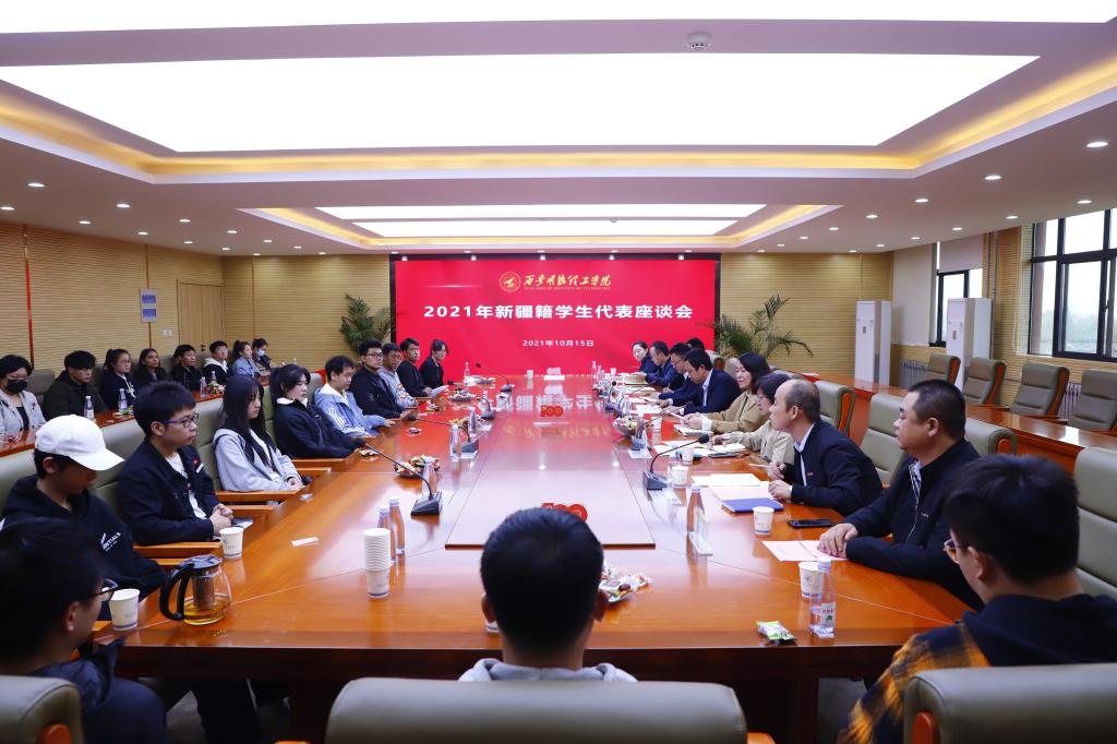 为进一步了解新疆籍学生在校学习和生活情况,促进学生管理服务工作,10月15日下午,学校在明志楼518会议室召开2021年新疆籍学生代表座谈会。新疆驻陕西工作组教育协调工作组组长王瑛、学校党委副书记董昊、新疆内派驻雷竞技官网指导教师季俊红、新疆驻陕西工作组教育协调工作小组成员王东辉、学校党委组织宣传部部长高超、副部长肖千春,党委学生工作部相关人员及新疆籍学生代表参加了座谈会。会议由党委学生工作部副部长童杨梓主持。