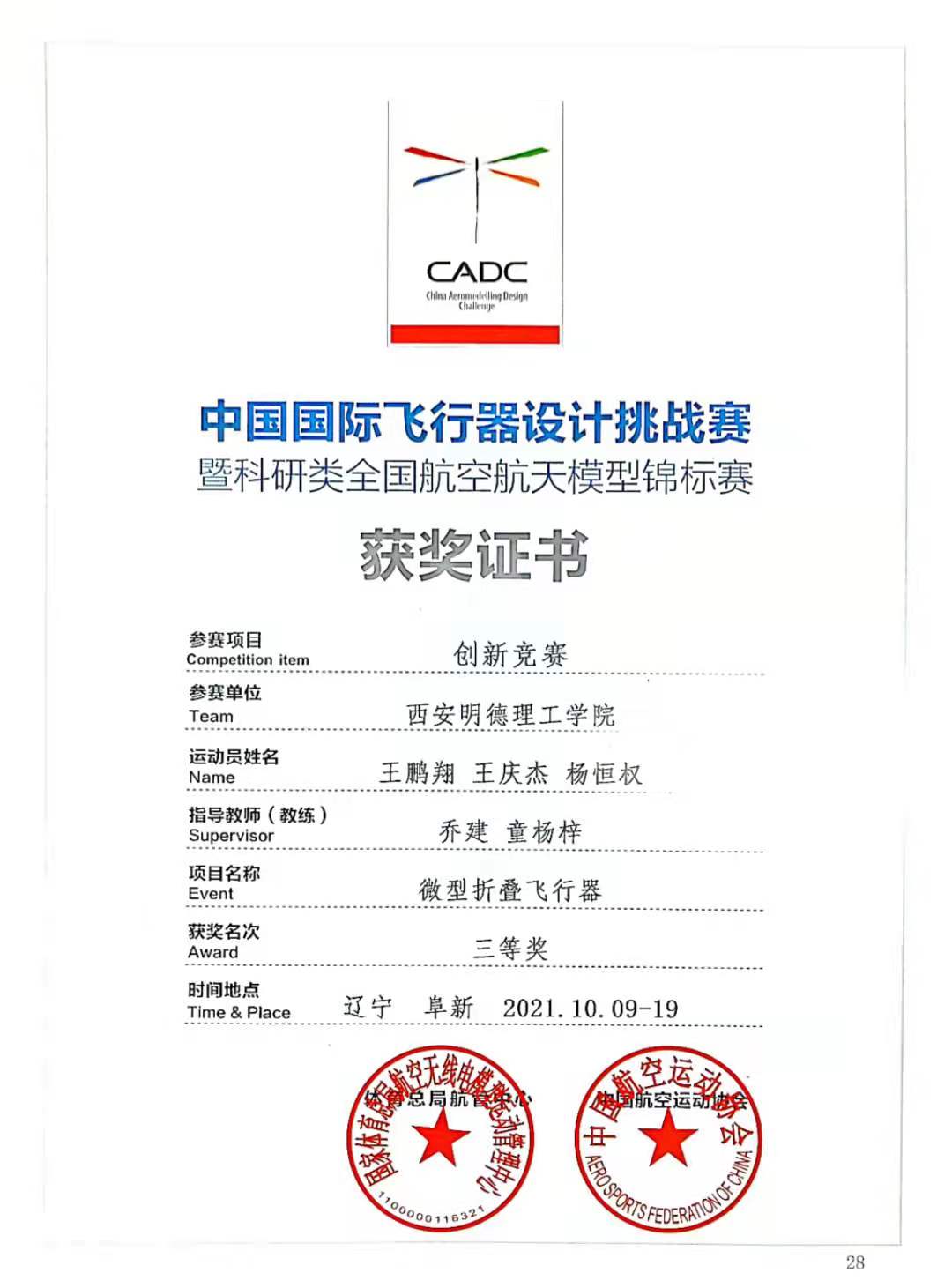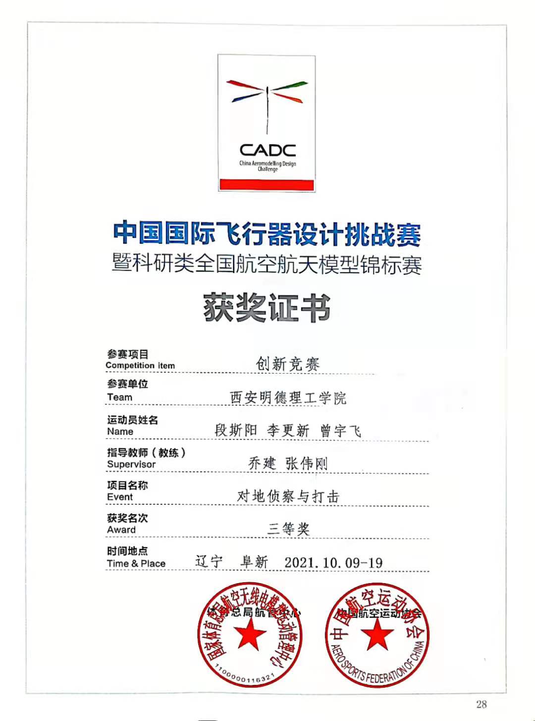 中国国际飞行器设计挑战赛是由国家体育总局等部门组织举办的国内高水平飞行器设计大赛,是一项融合了国防、科技、教育、体育运动的航空航天科技科研赛事活动,与美国举办的世界大学生航空设计大赛(SAE)、欧洲大学生载重飞机设计大赛(ACC)并列为世界高校科研类飞行器设计赛三大赛事,在全国高校具有广泛的影响力和认可度,对于培养大学生的航空科技实践创新能力具有重要的推动作用。