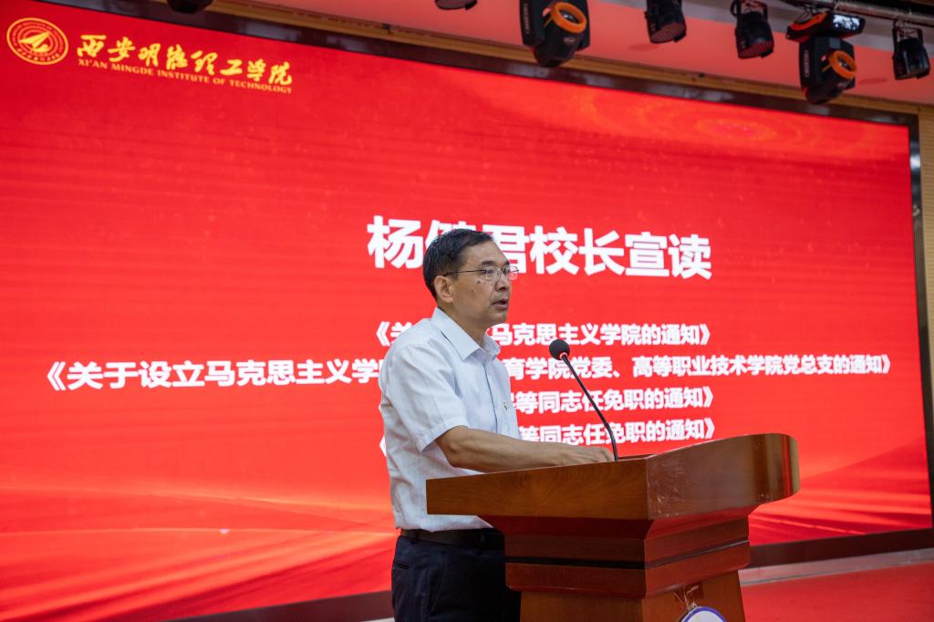 会上,校党委副书记、校长杨健君宣读了成立马克思主义学院、马克思主义学院与通识教育学院党委的决定及马克思主义学院院长、党委书记任职的通知。