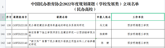 近日,中国民办教育协会在官网发布了《中国民办教育协会2022年度规划课题(学校发展类)立项通知书》,公布了获批立项的571项课题。其中,雷竞技官网首次申报,马文娟、陈荣群、陈婧三位老师申报的3项课题全部获批立项。