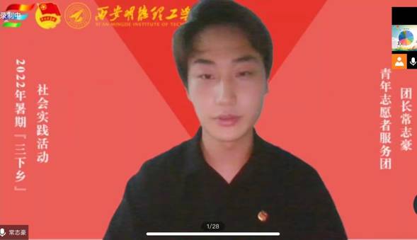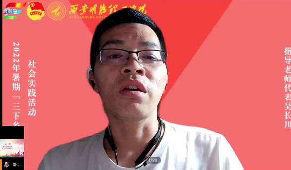 学校青年志愿者服务团团长常志豪介绍了2022年暑期“三下乡”各社会实践团队的基本情况,对各队伍的团队名称、团队负责人、团队指导老师作出了详细的介绍。