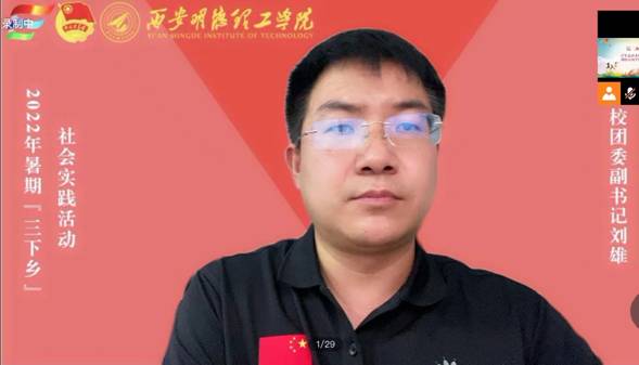 7月15日,学校2022年大学生暑期“三下乡”社会实践活动出征仪式在线上举行。学校党委副书记董昊,党委学生工作部副部长兼校团委书记童杨梓,马克思主义学院思政教研室主任惠斌,各社会实践团队指导教师、各团队负责人及团队成员共200余人参加会议,会议由校团委副书记刘雄主持。