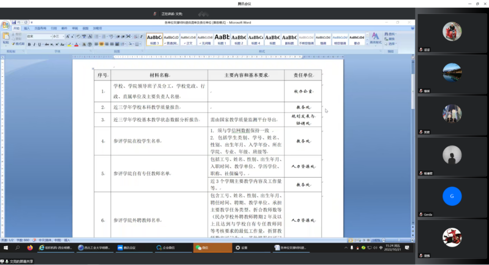 学校评建办副主任文亮部署了二级学院评估支撑材料分工及要求。学校评建办副主任张瑜就支撑材料的要求与评估中心进行了交流。庾鲜海副校长要求各单位、各二级学院积极准备材料,配合评建办,共同推荐二级学院评估工作的开展。