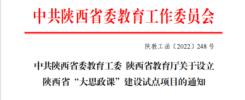 近日,中共陕西省委教育工委、陕西省教育厅公布了2022年陕西省“大思政课”建设试点项目立项结果,学校突破性的获批陕西省“大思政课”建设试点项目1项。