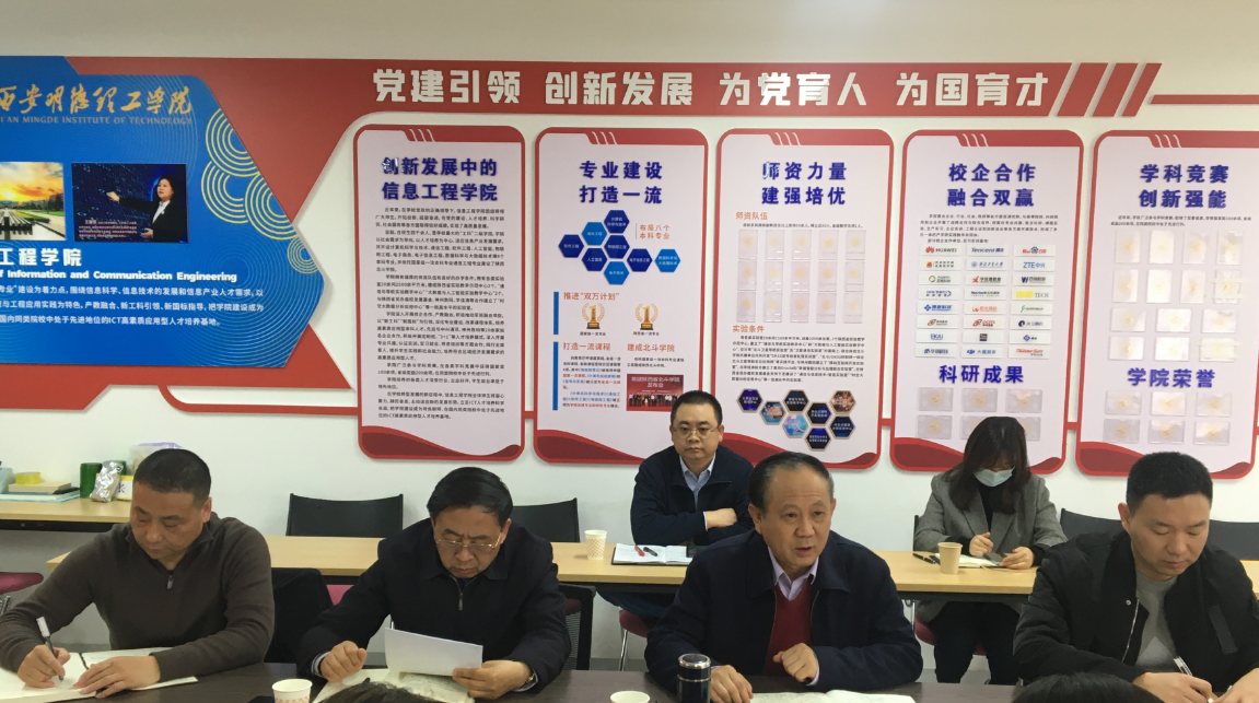 信息工程学院领导班子围绕学院基本情况、专业建设、课程建设、师资队伍、实验室建设、产业学院,党建和学生等工作,以及学院在“十四五”时期,合格评估来临之际面临的机遇与挑战等作深入详细汇报。