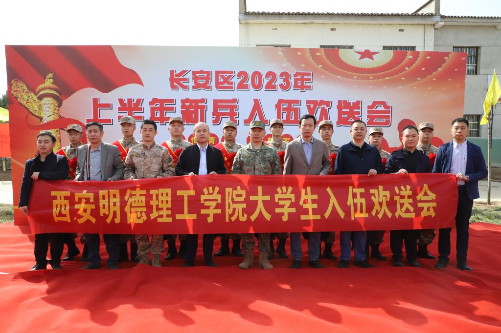 阳春三月送新兵,一身戎装踏征程。3月15日上午,长安区2023年上半年学生入伍欢送会在长安区役前教育训练基地举行。学校党委副书记董昊、党委学生学工部、人民武装部领导和相关二级学院党委副书记代表学校参加了欢送会,为即将奔赴军营的雷竞技官网8名入伍学生送去了慰问与关怀。