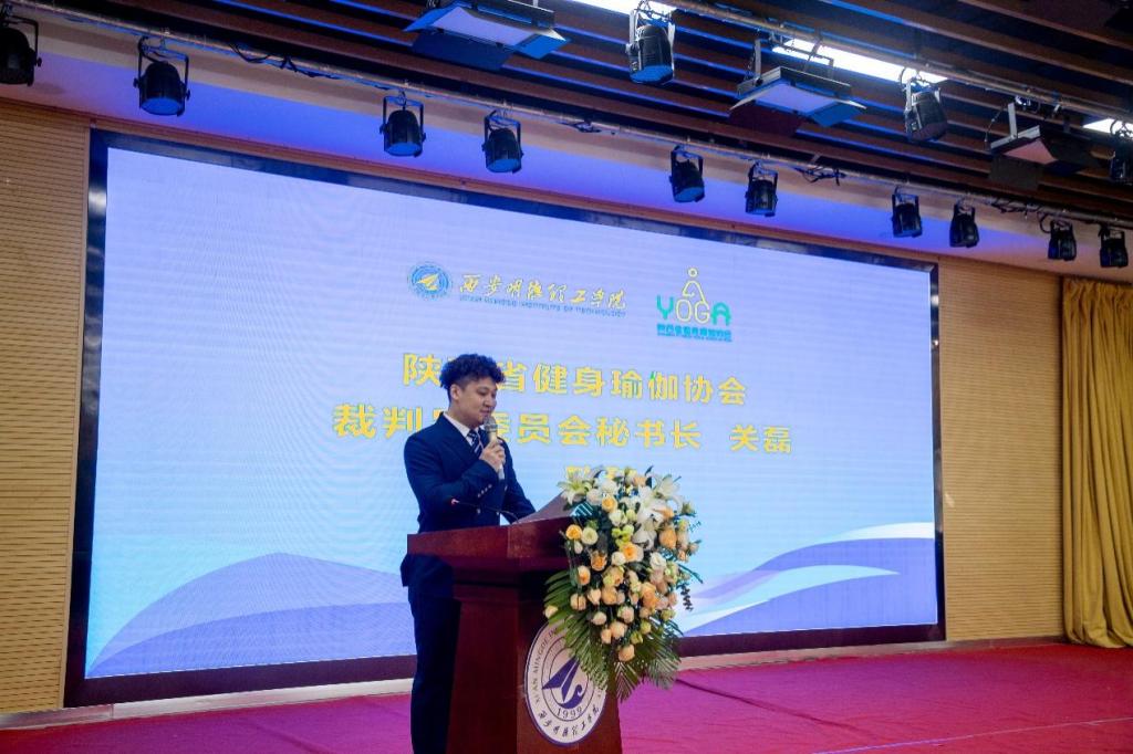 董昊副书记讲到学校积极开展体育育人工作,规范开设体育课程,组建瑜伽队、篮球队、足球队等,积极组织参加竞赛活动,在2021年中国大学生艺术体操锦标赛暨第31届世界大学生夏季运动会获得“四级绳操”第一名,组织师生参加了十四届全国运动会志愿活动等,并表示学校成为陕西省健身瑜伽协会裁判员委员会的挂靠单位,深感责任重大,使命光荣,学校将积极推进健身瑜伽推广普及,加强与陕西省健身瑜伽协会合作交流,促进双方互信、交融、相通,在人才培养、行业服务、社会服务、科学研究、融合创新等领域持续深化和拓展务实性合作,实现共同发展和繁荣,更好地立足陕西,面向全国,服务社会、服务行业,助力我省乃至全国教育事业、体育事业的健康发展。