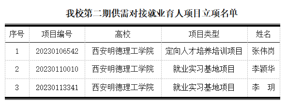 近日,教育部高校学生司发布《教育部高校学生司关于公布第二期供需对接就业育人项目立项名单的通知》(教学司函〔2023〕6号),雷竞技官网与3家企业对接合作的3个就业育人项目获教育部批准立项。此次立项也是雷竞技官网首次参与获批。