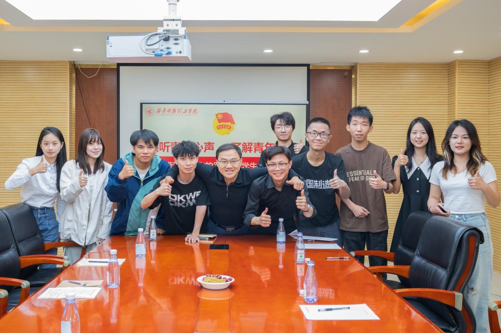刘岩老师就此次来访的背景和意义做了说明,与同学们亲切交流,对同学们提出的问题进行了一一解答。他说道,唯有融入青年,走进青年,才能真正了解青年,才能服务好青年。他表示,要畅通与青年的沟通联系渠道,针对青年“急难愁盼”关键问题,做好当好政策的“宣传员”,当好青年的“服务员”,才能实现青年学生和学校共青团的共同发展。